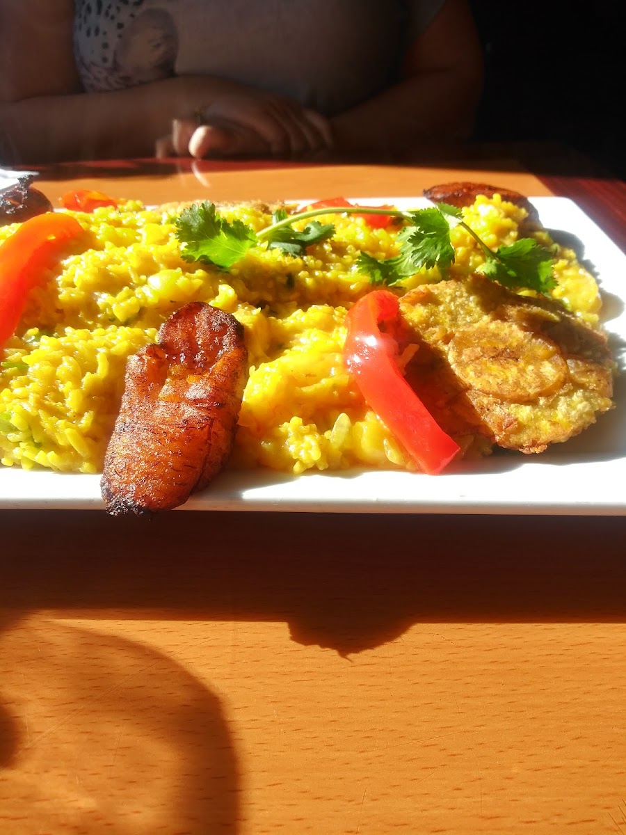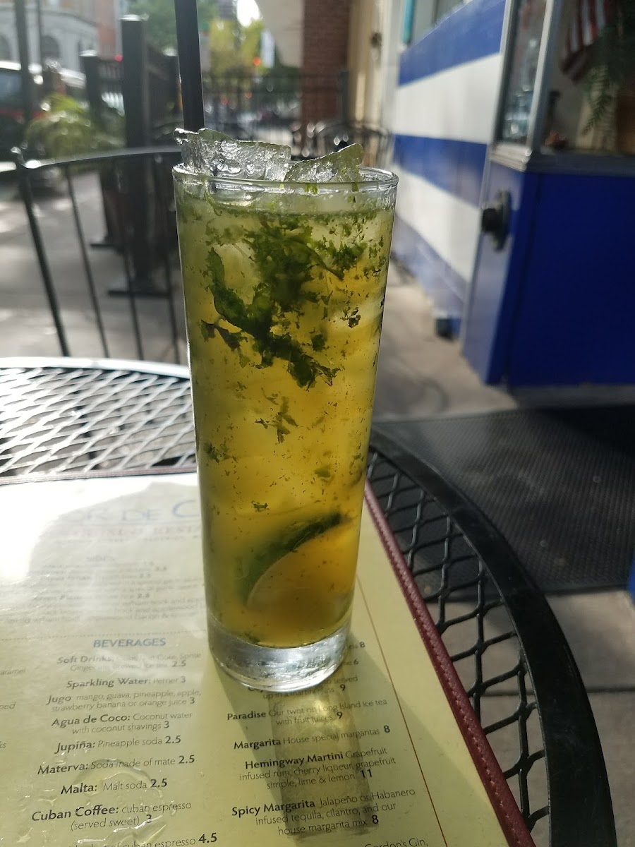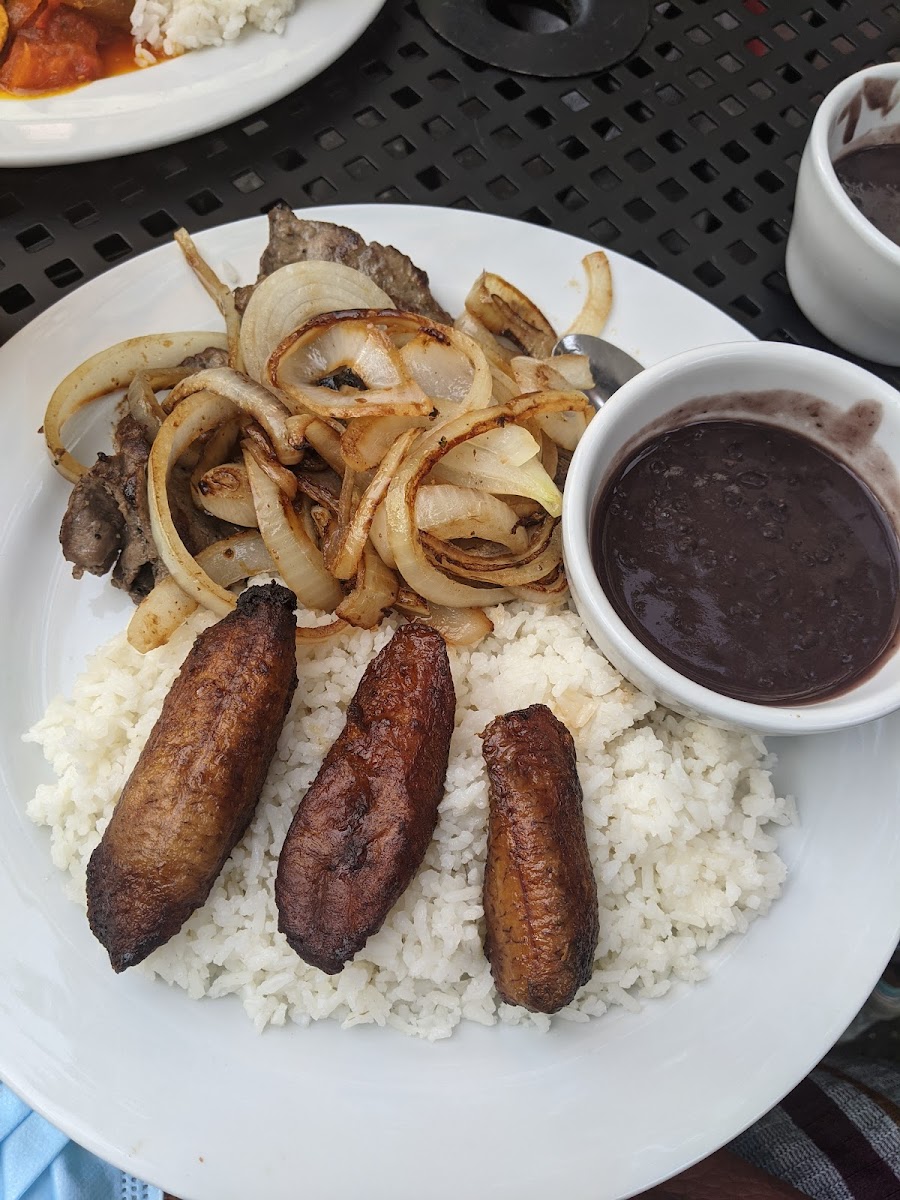 Sightseeing in historic Frederick opted to have a Cuban late lunch. Chose to outdoor seating on account of a furry companion due to indoor restrictions. We ordered shrimp plate which was quite generous with plump shrimp, flat skirt steak tender and flavorful topped with chimic hurri, mastita de puerco-a plate of deeply fried marinated chunky pork pieces with white rice, plantains andblack beans, hefty and filling and lastly arroz pollo like a cuban version of chicken biryani but milder and nicely seasoned rice. Service was attentive. A bit disappointing patio seating-limited space and inadequate shading from harsh summer afternoon sunshine and water bowl for pet needing some washing and fresh water.